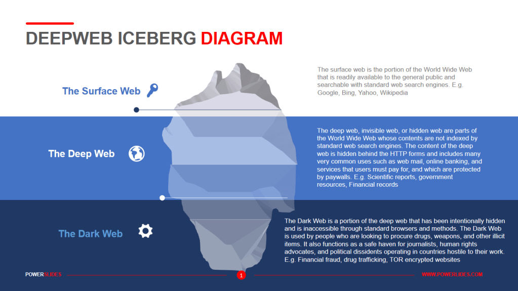 The bottom part of the iceberg is the dark web and while there are no exact figures, less than 10 percent of the content on the internet resides on the dark web. Typical content that is found there are drugs, illegal content, stolen information, and other hacker-esque content; however, it is also a place for citizens of repressive regimes to access denied content, journalists to communicate without regard to government interference, and in general a place for human rights advocates! Most of the culture surrounding the dark web is not just criminal in nature, but it is more about individual rights.